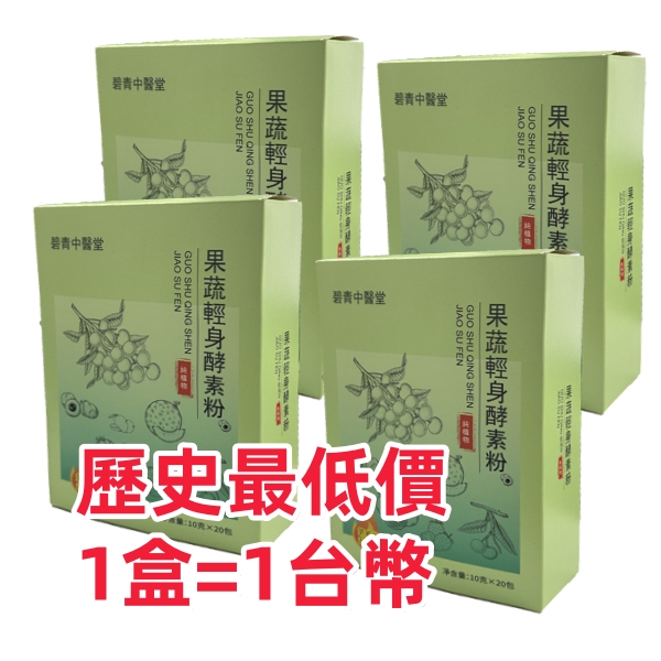 2分鐘前【 曆史最低價1盒僅需1台幣】-碧青中醫堂果蔬輕身酵素粉-健康再升級!<一盒瘦4公斤> 可燃燒脂肪、可降血壓、穩定血糖、抗衰老 【專為亚洲人減重】 - 共6盒【暴瘦15-20公斤】限量299組!!-僅需 NT$1980